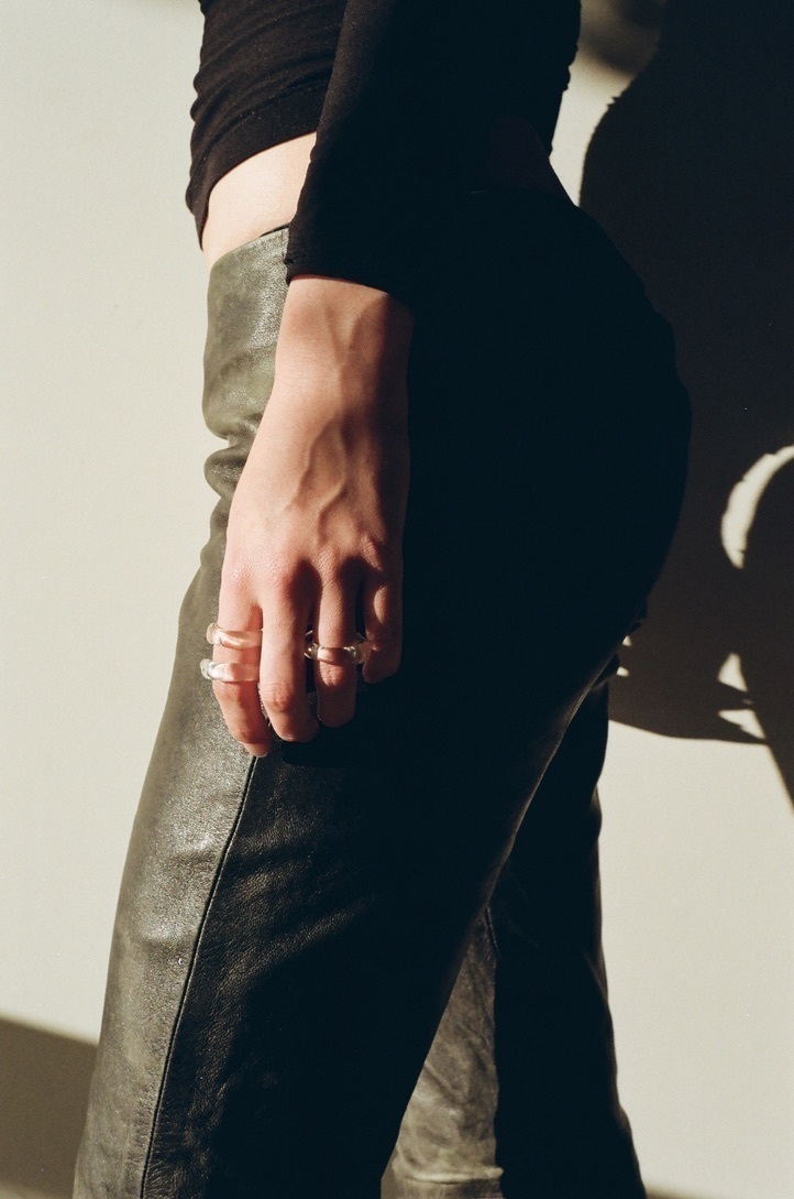Pantalón tiro bajo entallado, confeccionado en eco cuero de textura suave con acabado mate. Forreria intera en poplín de algodón para mayor confort en contacto con la piel.